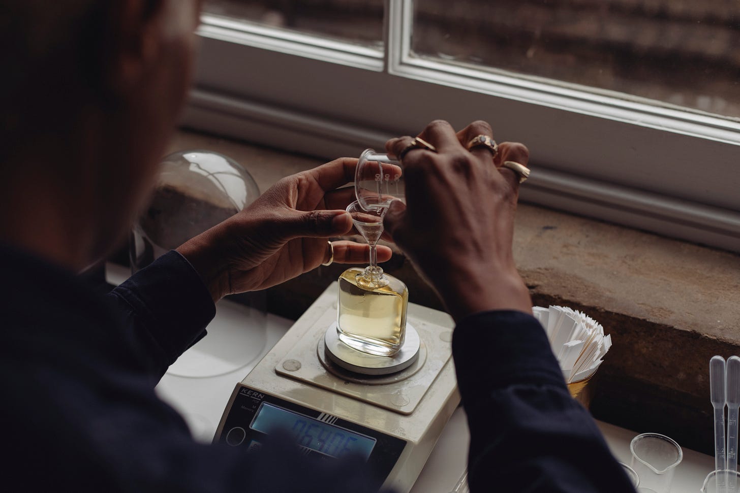 I start with a concept, often inspired by photography, colours, textures, or personal experiences. From there, I explore ingredients that capture the mood or story I want to tell, blending raw materials in layers to create depth. It’s a process of experimentation and refinement, where scent becomes a way to express emotion, place, and identity.